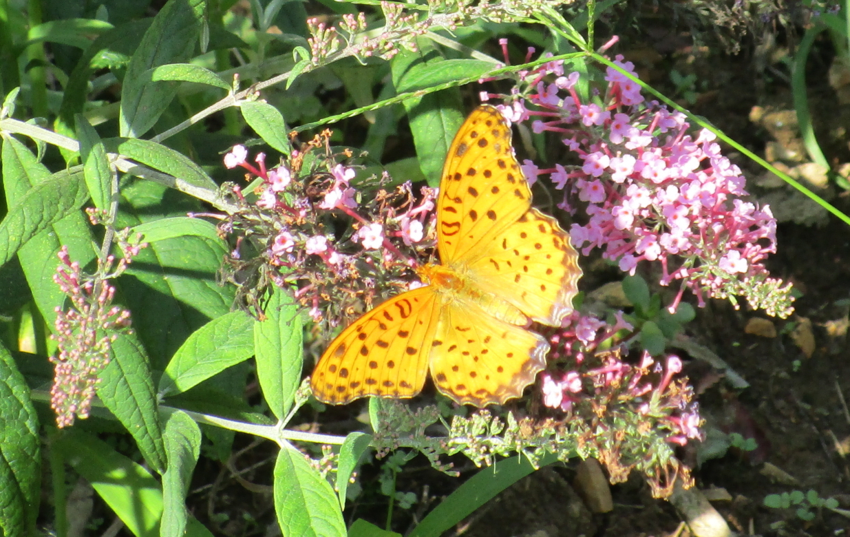 ブットレアに蝶々が来て、一生懸命に蜜を吸っていました。