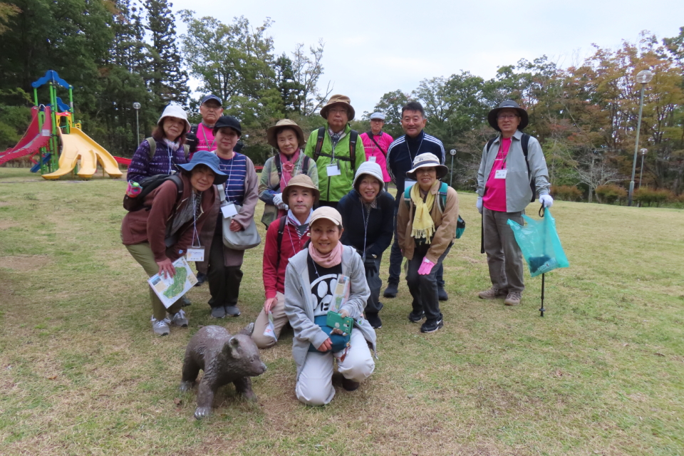 第二展望台子ども広場の熊ちゃん(オブジェ)と記念撮影!