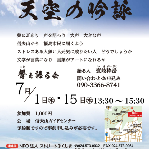 - 2024/07/14 信夫山GSと古民家西坂家 今週(7/15~21)の予定! 「NPO法人ストリートふくしま」は2施設を運営し、 案内所・休憩所としての役割と... 続きを読む